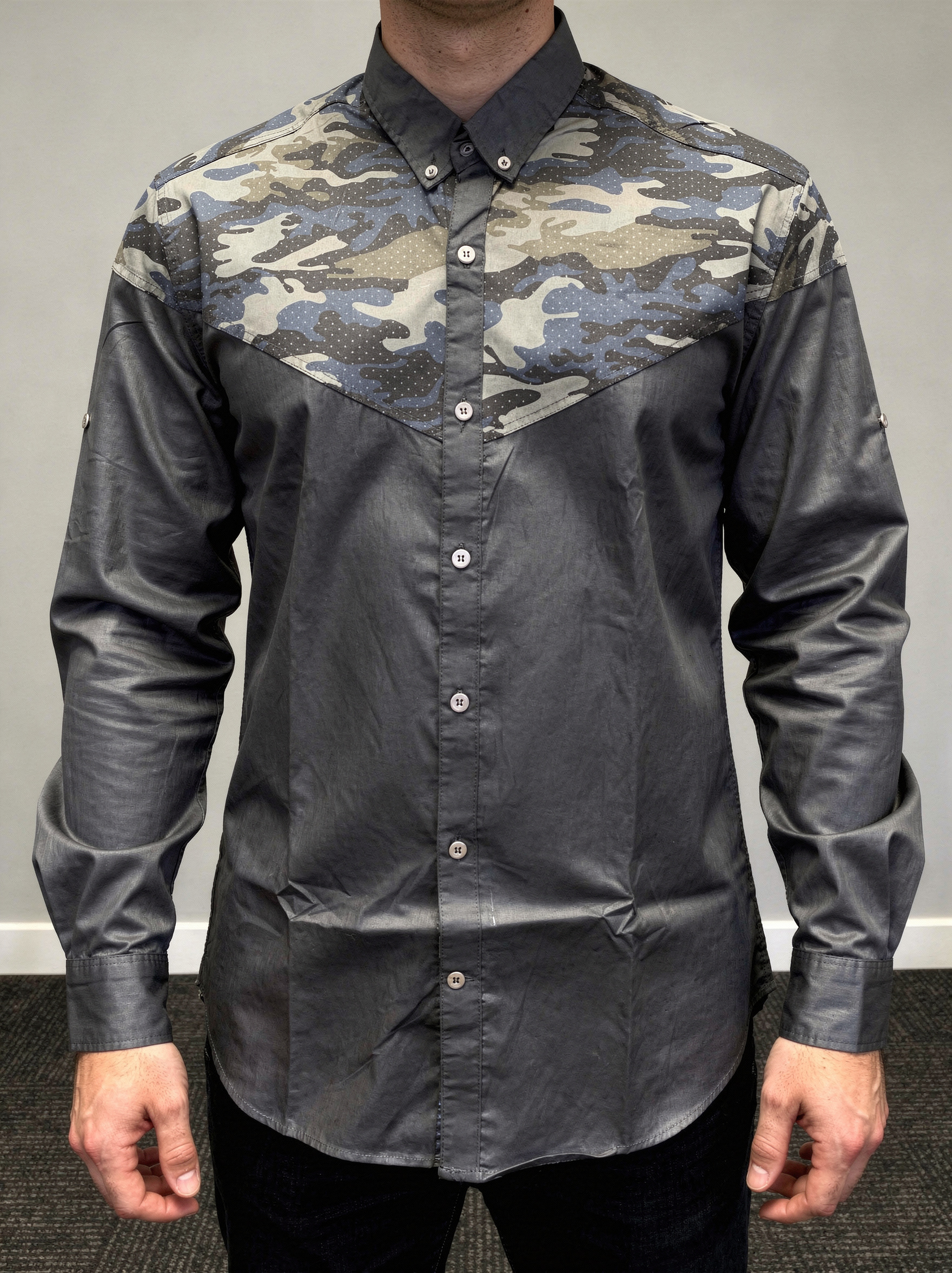 پیراهن طرح دار مشکی مردانه آستین بلند اسپرت (۴۱۱)