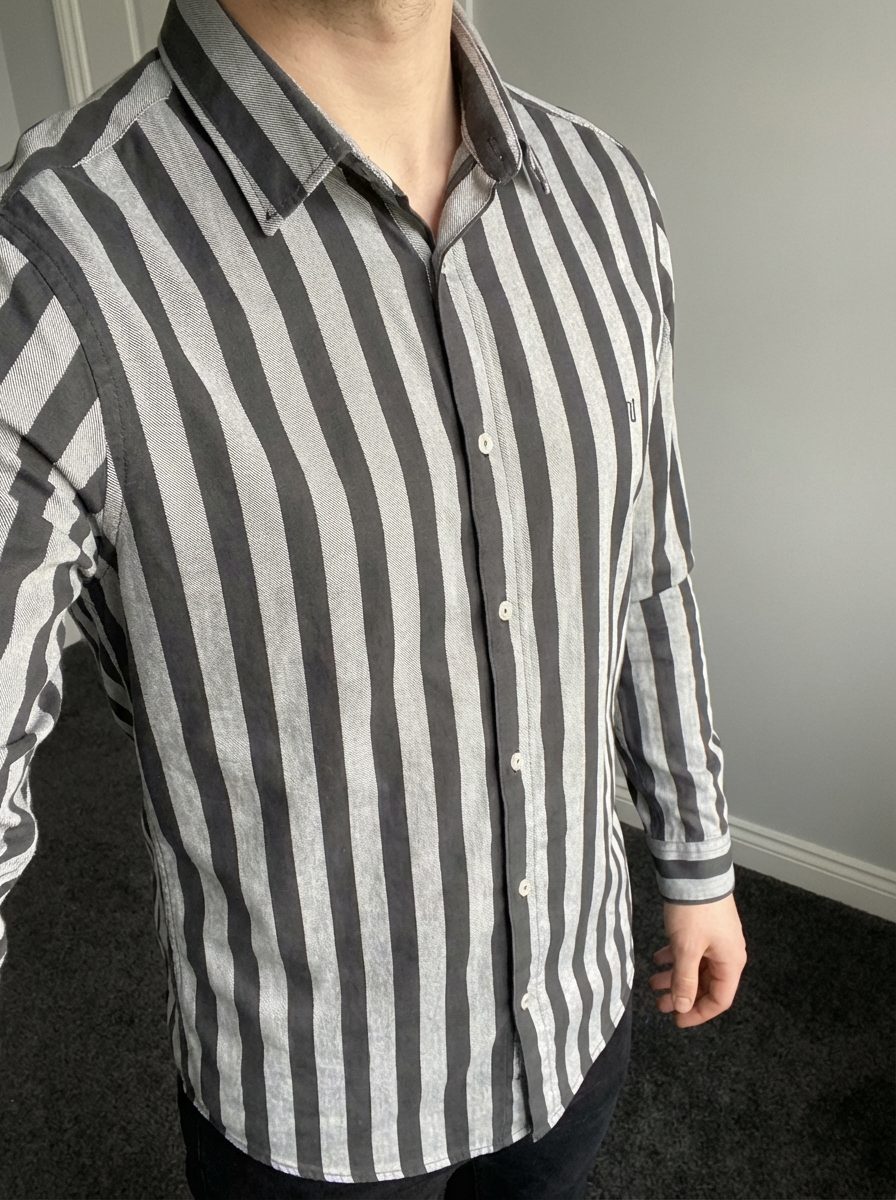 پیراهن آستین بلند مردانه مشکی طوسی راه راه (۸۹۸)