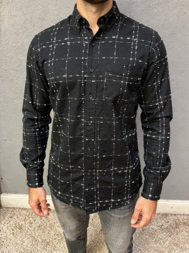 پیراهن طرح دار مشکی مردانه آستین بلند اسپرت (۴۱۱)