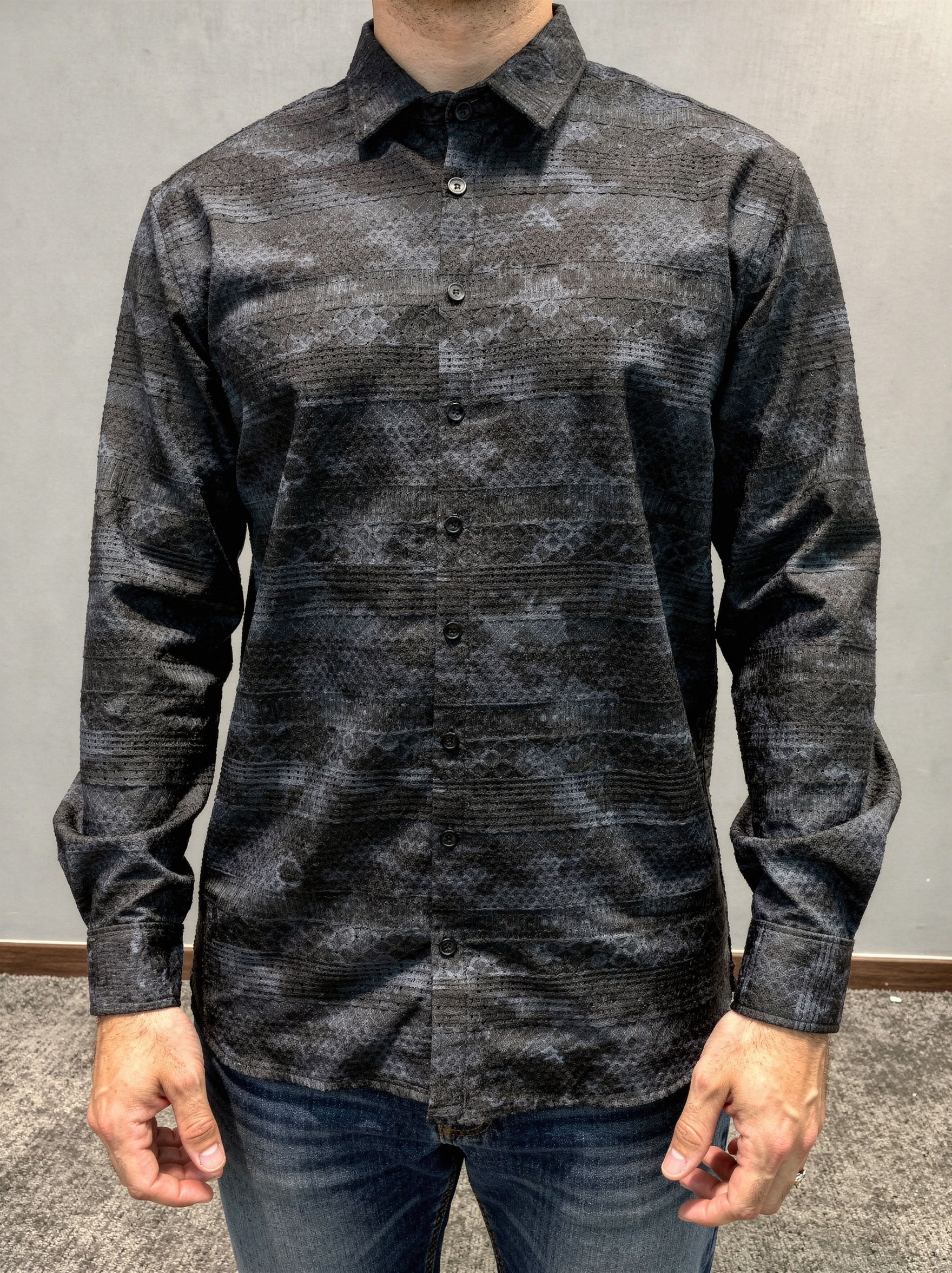 پیراهن طرح دار مشکی مردانه آستین بلند اسپرت (۴۱۱)