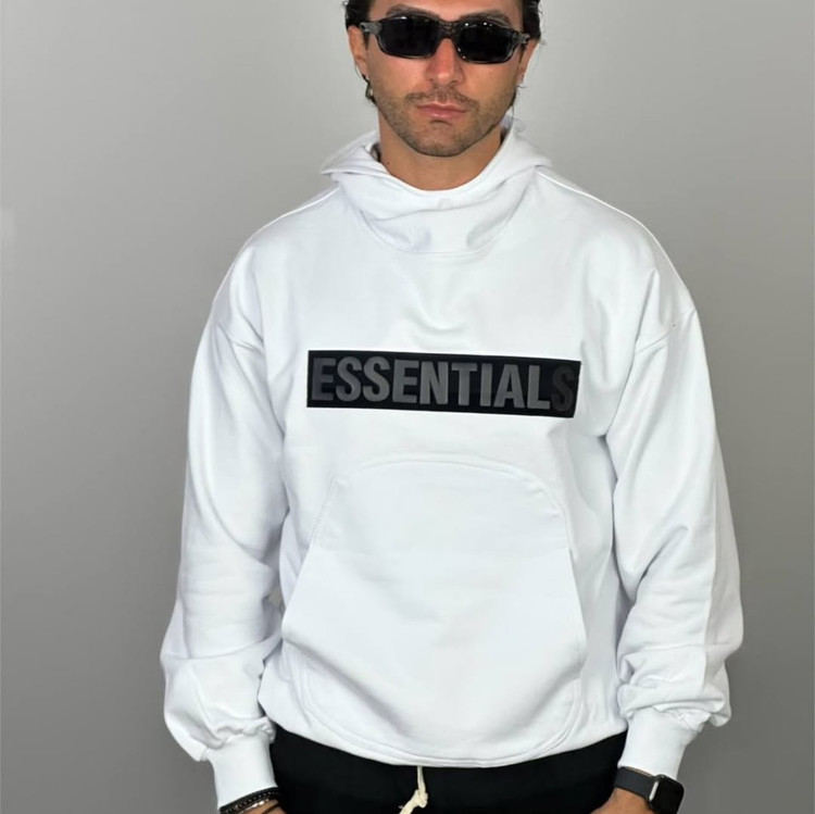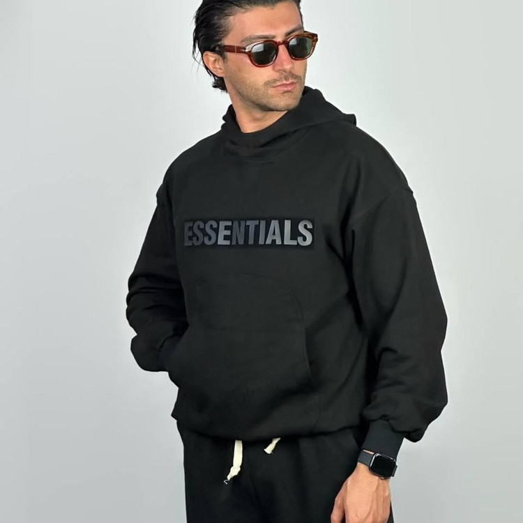هودی ۳ نخ بدون کرک قواره باکسی در دورنگ مشکی وسفید