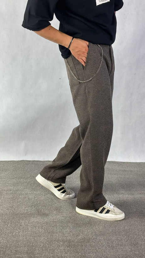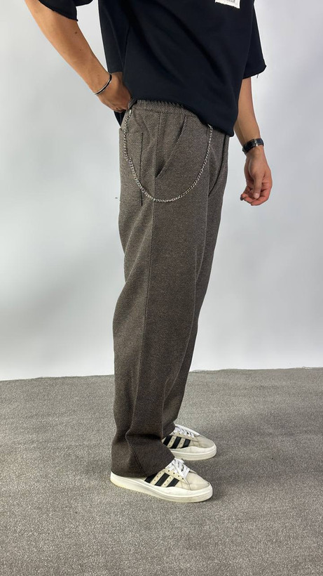 شلوار پشمی قهوه ای مردانه پیله دار با زنجیر (۱۸۸)