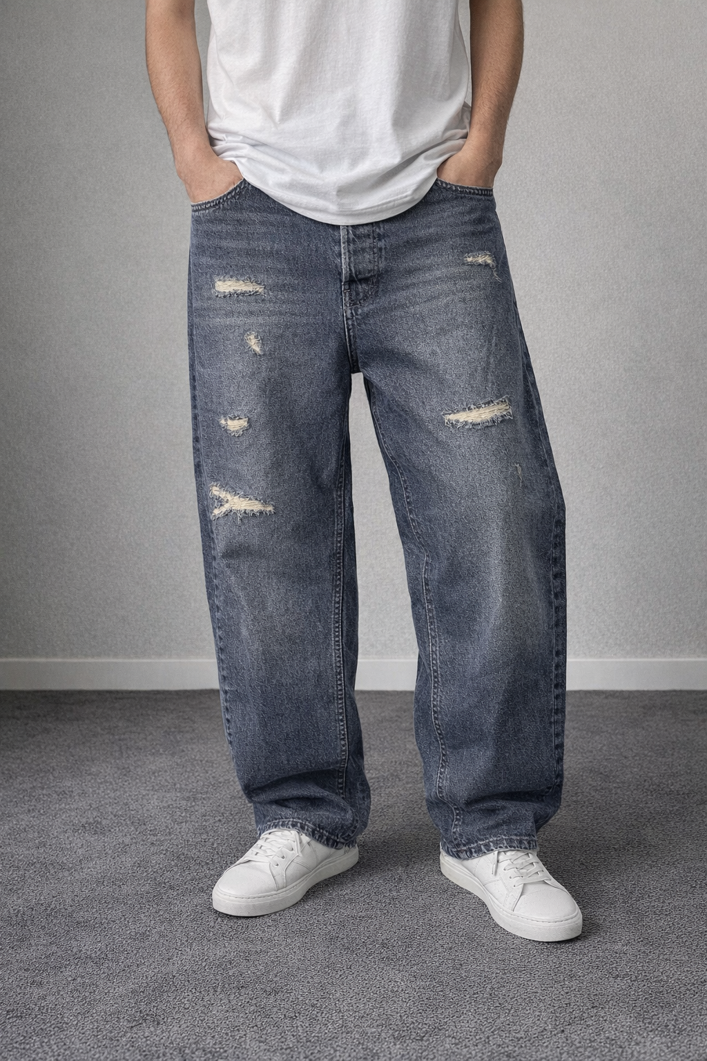 شلوار فول بگ مردانه رنگ سرمه ای زاپ دار دارای زاپ فیکس شست ترند قد ۱۱۵ پارچه ترک دوخت شرکتی و صنعتی تمیز تضمین دوخت و کیفیت