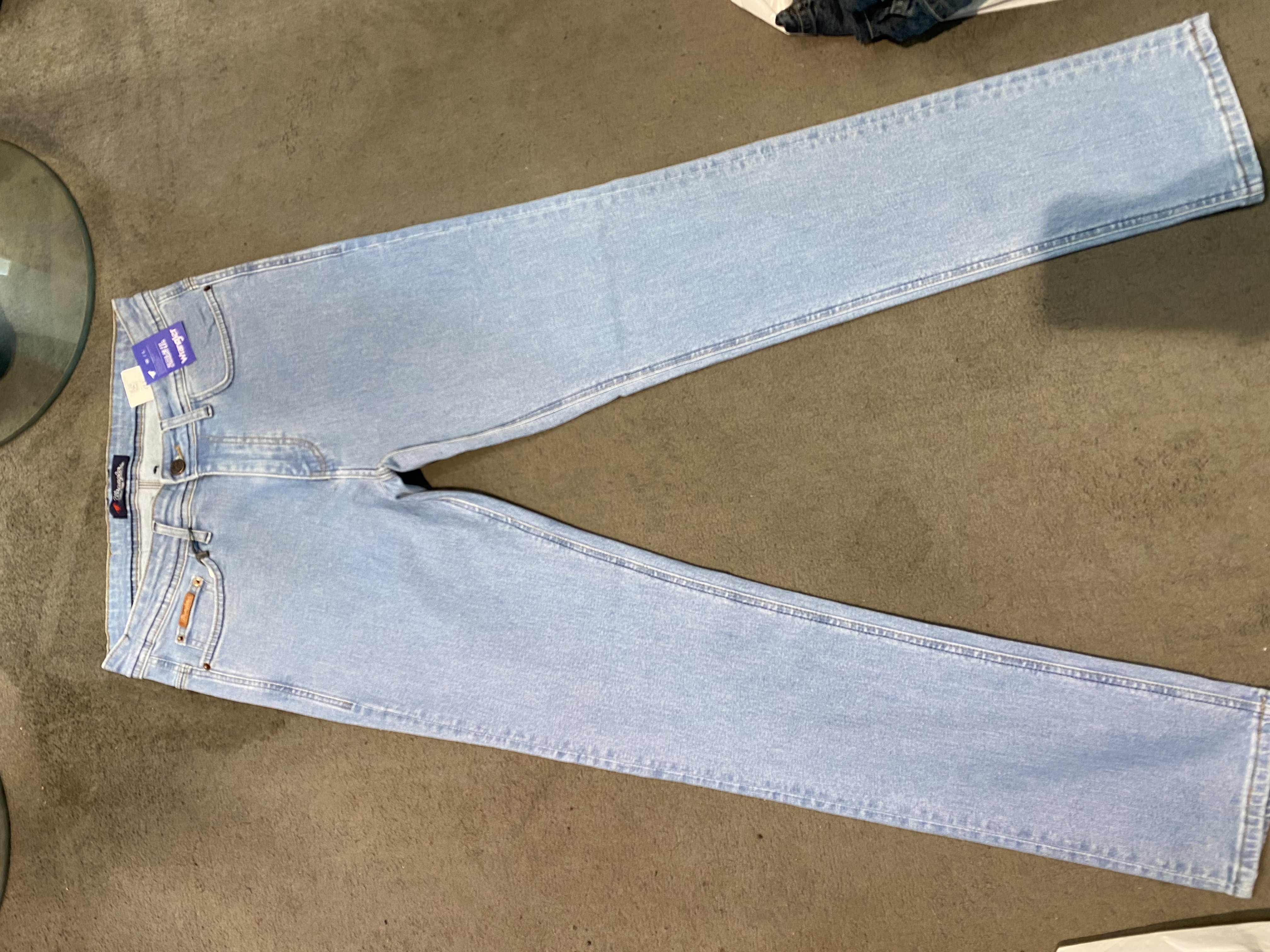 شلوار جین لی راسته آبی روشن مردانه ترک وارداتی پارچه کجراه (۶۷۰)