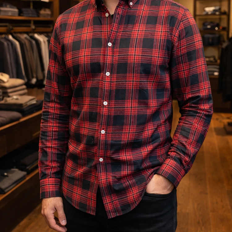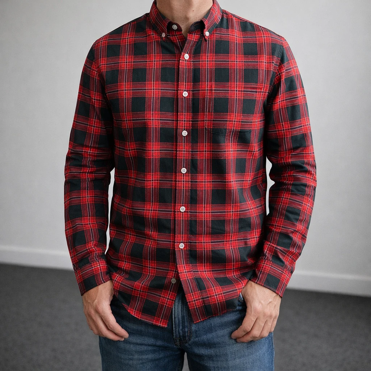 پیراهن مردانه اسپرت چهارخونه قرمز مشکی زرد آبی تمام نخی قواره استاندارد ترند (۲۲)