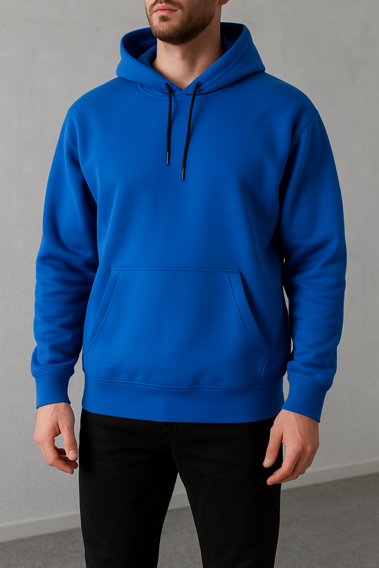 هودی بیسیک (ساده) آبی کاربنی ۳ نخ داخل کرکی باکسی(۱۱۵)