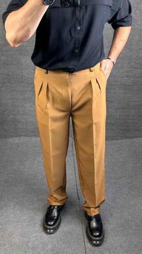 شلوار پارچه ای مردانه نیم بگ رنگ شتری (۱۸۹)
