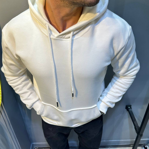 هودی سفید اسپرت باکسی سه نخ داخل کرک(۱۸۴)